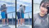 猛暑の練習で汗だくになった練習着のまま、青空の下でイチャイチャ。