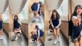 『彼氏に会いに来た放課後制服ちゃん、エレベーター出た瞬間に後ろから襲撃パンティ丸見え!』